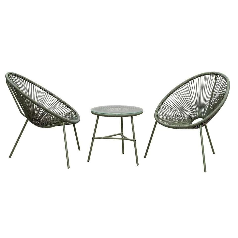 De loungestoelen zijn gemaakt van metaal en afgewerkt met kunststof rope in de kleur olijfgroen.