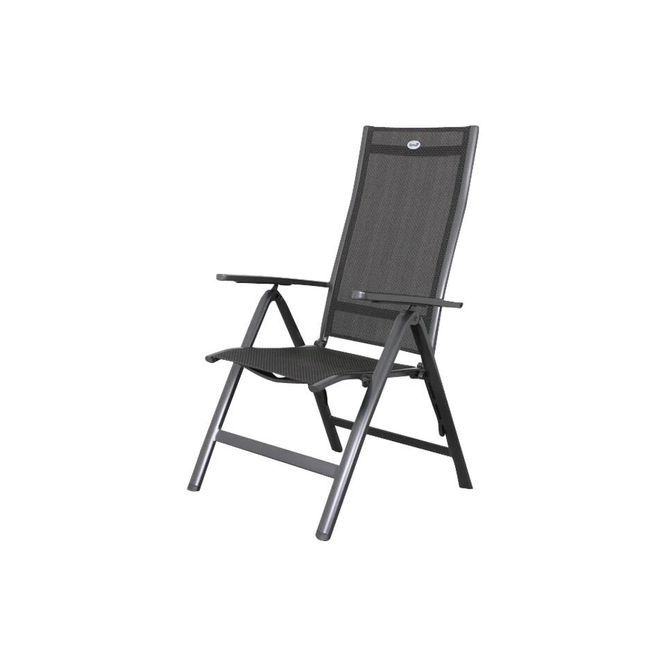 De verstelbare tuinstoel heeft een aluminium frame. De stoel heeft een textileen zit en rugleuning. De armleuning van de stoel is van aluminium. Door deze materialen te combineren heeft u een stevige maar ook een zeer mooie stoel. De stoel is te verstellen in meerder standen zodat hij perfect zit tijdens het eten maar dat u ook lekker in het zonnetje kunt gaan zitten met de rugleuning in de relax modus.