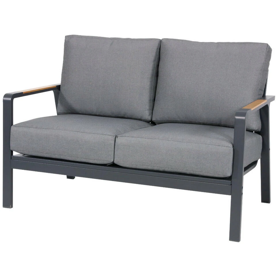 Geniet van de perfecte combinatie tussen stijl en comfort met loungebank Mai Tai! Deze prachtige bank komt uit de collectie van het merk Les en heeft een afmeting van B129xD79xH78 cm. Hij is uitgerust met een stevig en onderhoudsarm aluminium frame met een matte donkergrijze kleur als afwerking. Opvallend aan dit frame zijn de armleuningen, welke voorzien zijn van een decoratieve teaklook. Dankzij de fijne dikke en zachte zit- en rugkussens (245gr/m² olefin) kan er heerlijk lang op deze bank gezeten worden. Combineer loungebank Mai Tai ook met de andere outdoor meubelen uit de Mai Tai serie en geniet van een stijlvol geheel.