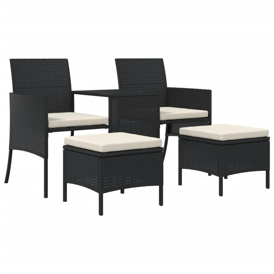 VidaXL Tuinbank 2-zits Met Tafeltje En Krukken Poly Rattan Zwart